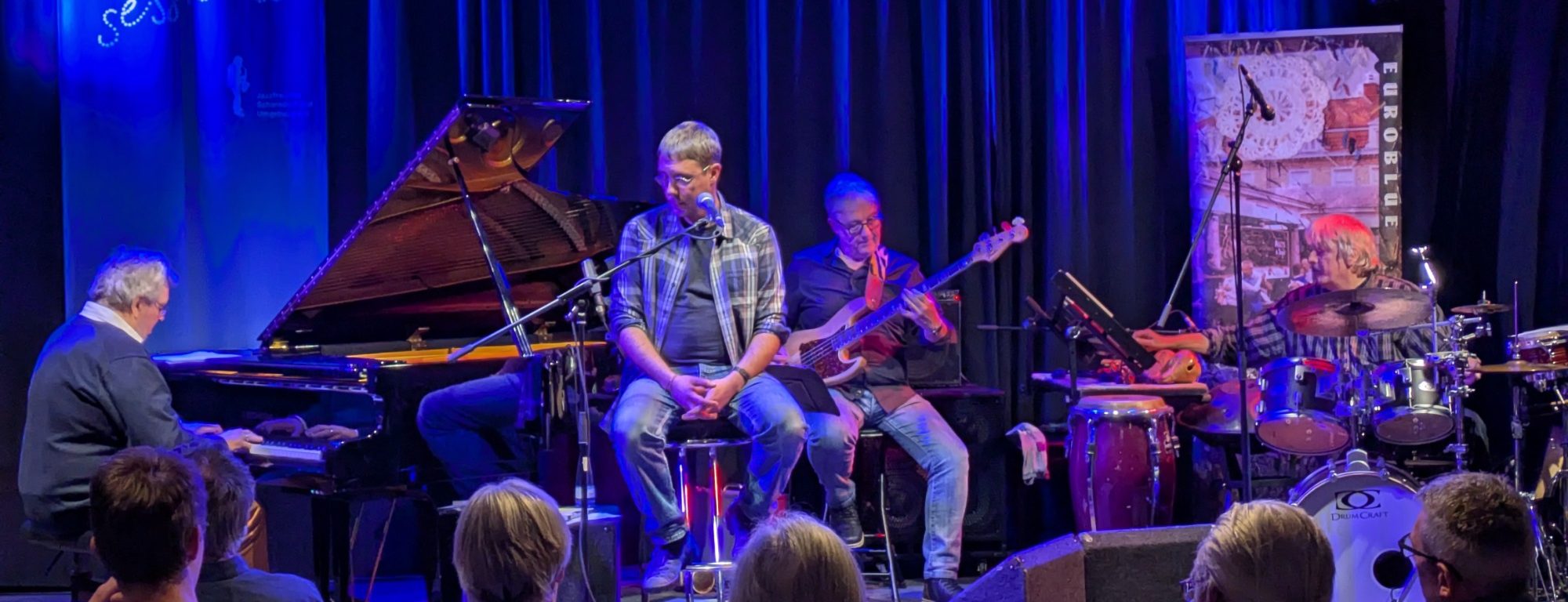 Als versklavte Afrikaner in Amerika europäische Musik – Folklore und Kirchenlieder - mit ihrer Musizierweise verbanden, entstanden Blues, Jazz und deren Kinder und Enkel wie Rock, Soul bis hin zum Hiphop. In der Karibik und Brasilien entstanden Salsa, Bossa, Samba und noch viel mehr. Euroblue vollzieht diesen Prozess unter Laborbedingungen nach und bringt europäische Folklore mit afrikanischer Rhythmik, Blues und Swing zusammen. Da finden Melodien, die zum Repertoire deutscher Gesangvereine zählen, keltische Motive, Skalen vom Balkan und aus Spanien zusammen mit Swing, Funk, lateinamerikanischen Rhythmen und aktuellen Grooves. Oder auch Lieder aus dem evangelischen Gesangbuch. Das Piano Andreas Spätgens‘ kommuniziert mit dem E-Bass Andy Schweigels und mit dem Arsenal an Perkussions-Instrumenten von Andreas Pastorek.